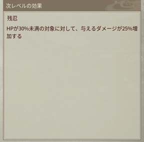 特定の武器による攻撃力をアップしたり、スキルレベルを追加レベルアップしたりなどといった、いわゆる「特殊能力」です。